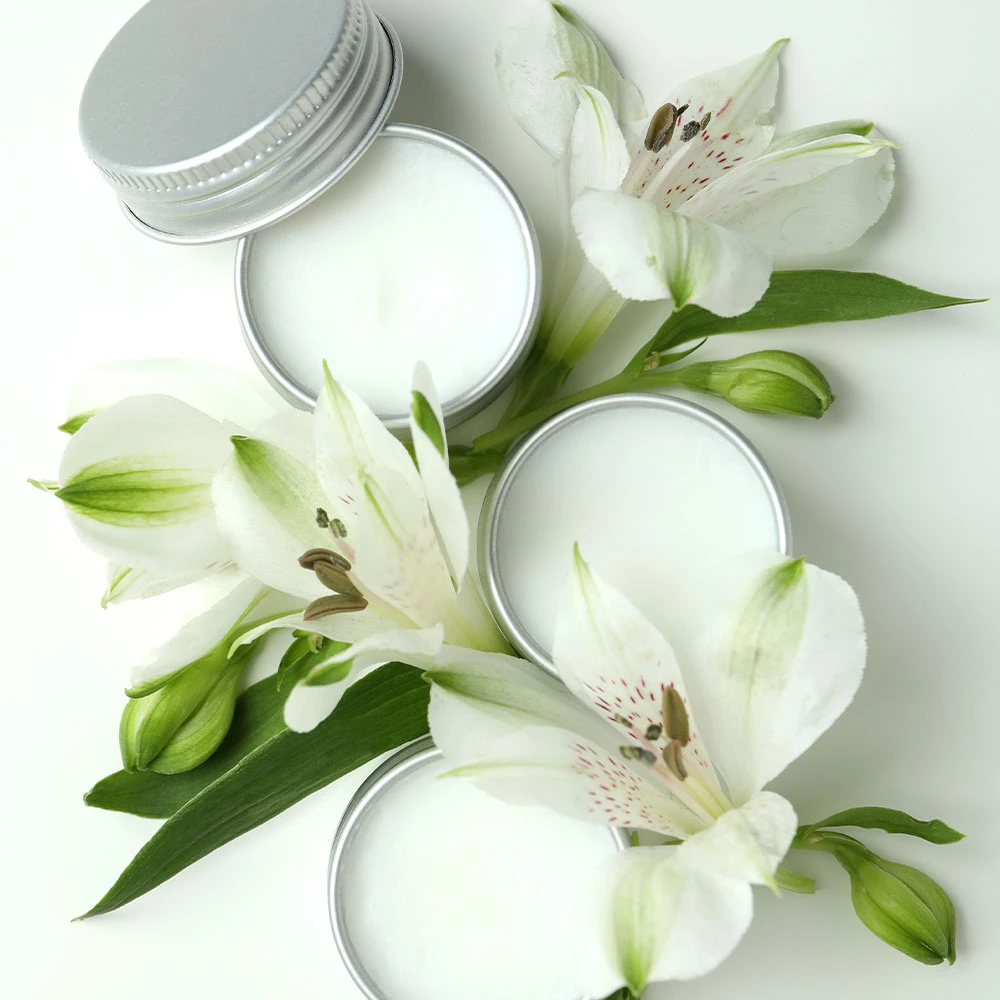 Treat your lips with our Whispering Wind Lip Balm, formulated with coconut oil and beeswax, providing intense hydration and a natural shine.